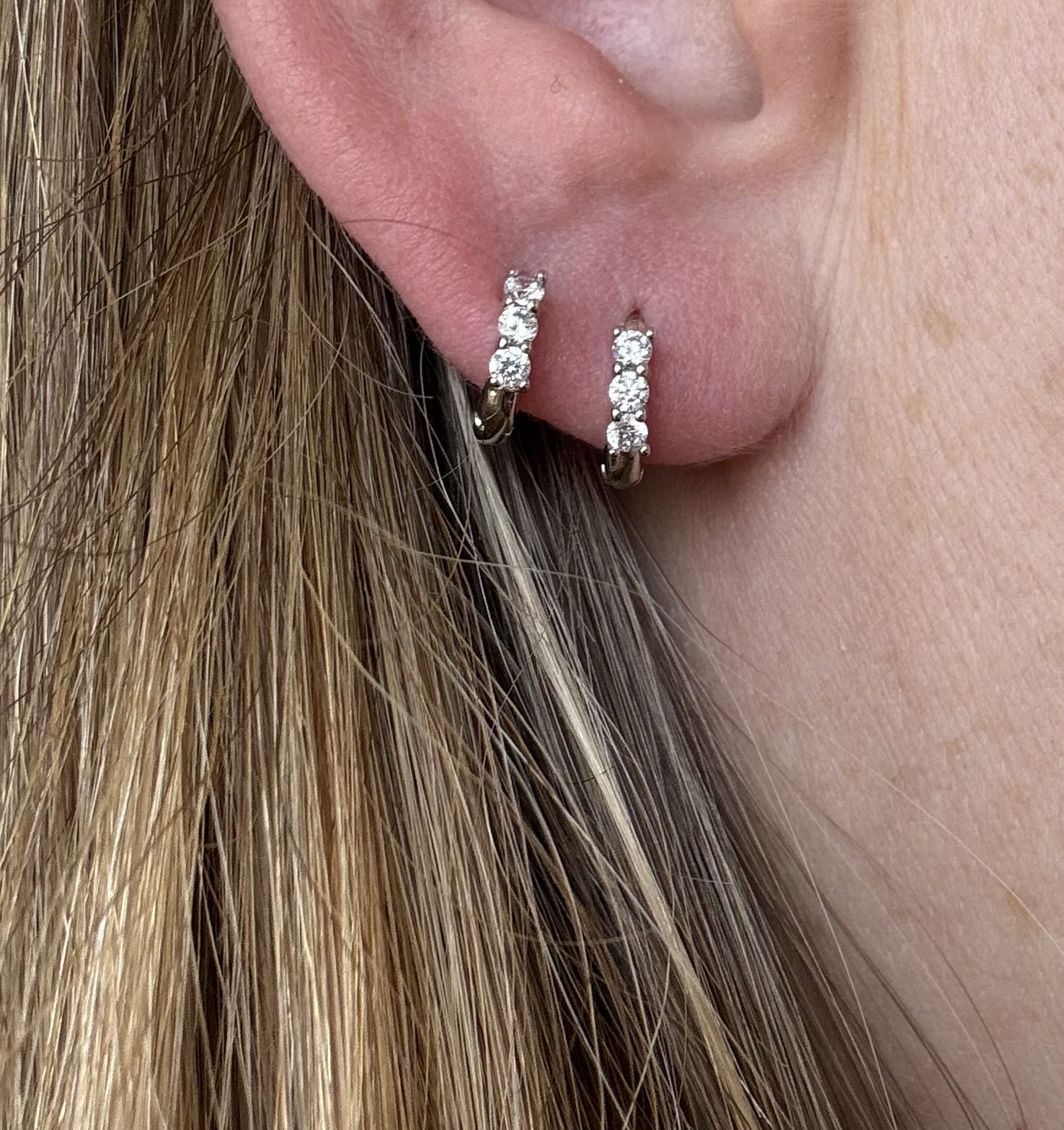 MINI aros acero inoxidable en color plata. Se abren por la mitad. Van decorados con tres circonitas blancas en la zona central. Miden 0,5cm de diámetro. Puedes ducharte y dormir con ellos. Conservan totalmente el color.