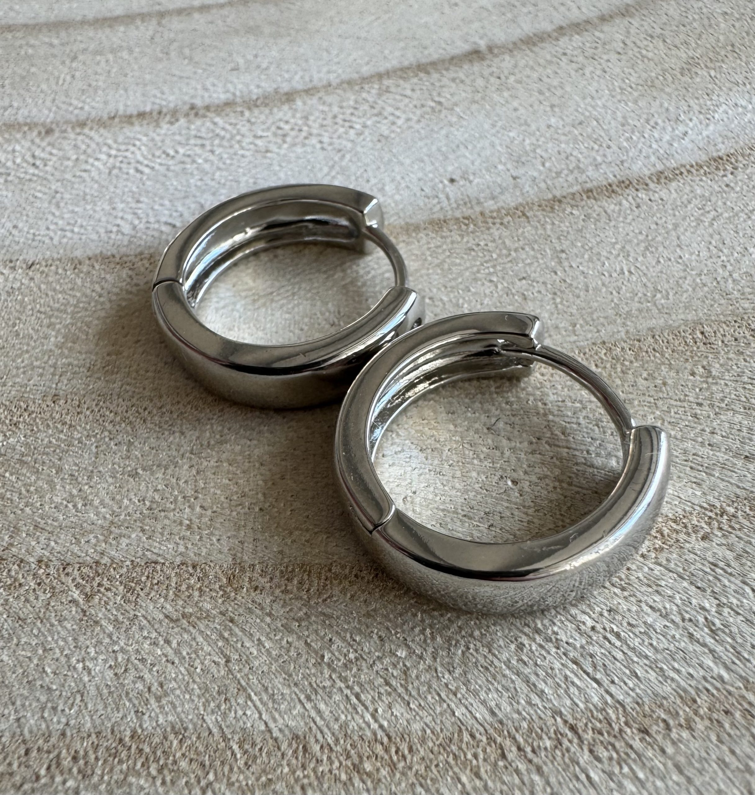 Aros de acero inoxidable, que se abren por la parte central. Van totalmente lisos. Miden de diámetro 2cm. Se pueden mojar en ducha, mejor no ponerlos directamente en contacto con alcohol.